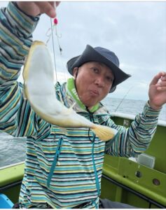 今朝は肌寒く今年一番秋を感じました。今日も厳しいながら、全員良型のショウサイフグを仕留めてもらえて良かったです。